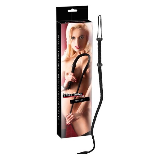 Črn bič Wild Things by Zado je narejen iz usnja, dolg pa je kar 90 cm ter na koncu skriva majhen repek, ki lepo švistne skozi zrak in zlahka povzroči sladko bolečino.