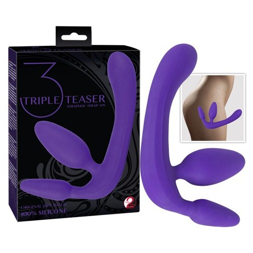 Vijoličen strap-on brez pasu je vsestranski erotični pripomoček, ki ga lahko uporabljate kot analni ali vaginalni čep ter tudi kot dildo! Njegova celotna dolžina obsega 20 cm, vaginalni čep približno 10,5 cm, analni pa 8,5 cm.