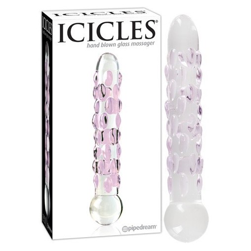 Steklen dildo z rožnatim vzorcem izboklin, ki ob vstavitvi zagotavljajo izjemno dražeča občutja.