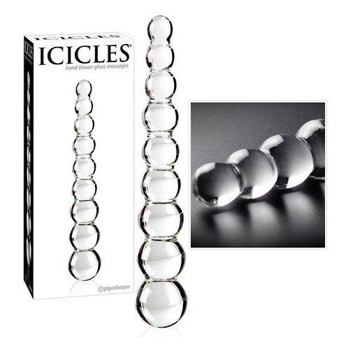 Dildo Icicles No. 2 odlikuje prelepo steklo, ki je oblikovano v kroglice, ki ob vstavitvi nudijo neizmerno sladka občutja. 22,5 cm dolg dildo s premerom med 1,5 in 3,7 cm je popolnoma brez vonja, za nameček pa tudi hipoalergen, kar pomeni, da ga lahko uporabljajo tudi alergiki. Preprosto je tudi njegovo čiščenje, saj se ga lahko opere celo v pomivalnem stroju, za posebno dražeče občutke pa namoči v toplo ali hladno vodo ter tako uživa v intenzivni stimulaciji.