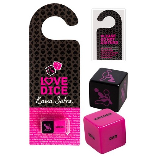 Kocke Kama Sutra vsebujejo 2 ljubezenski kocki in obesek za vrata, ki mimoidoče obvešča naj ne motijo dogajanja v spalnici, saj se na njih bohoti napis "Please do not disturb". Obesek torej pridno uporabita na zunanji strani vajinih vrat, nato pa se prepustita sreči kock, ki bosta zlahka odločili o vajinem naslednjem seks položaju!