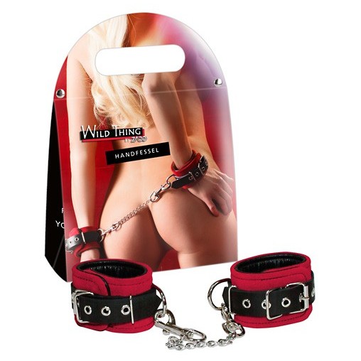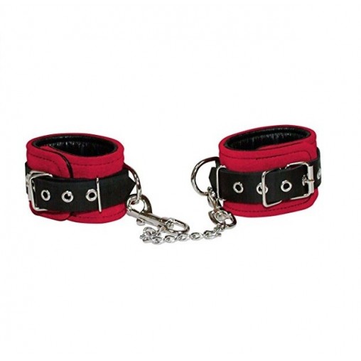 Okovi narejeni iz usnja, ter povezani z verigo. Usnje je prevlečeno z rdečim semišem in je udobno za nošenje.