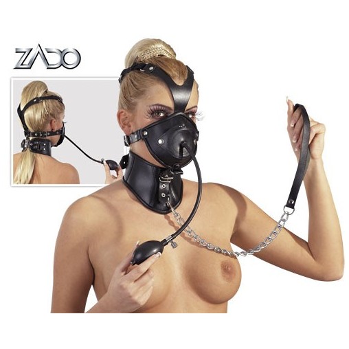 Maska narejena iz mehkega in kvalitetnega usnja. Maska ima gag penis, ki ga s pomočjo črpalke lahko povečate. Maska je s pasom povezana z ovratnico. Ovratnica ima povodec narejen iz 59cm dolge verige. Maska je nastavliva z zaponkami.