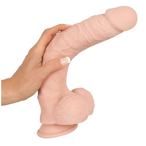 Dildo v barvi kože ima realistično obliko penisa, koren je posut z žlezami, glavica je realistično oblikovana, testisi pa so gladki. Poleg njegove oblike in materiala, ki se mu ni moč upreti, pa vas bo zagotovo navdušila tudi upogljivost dilda. Dildo se namreč lahko upogne do kota 30° in potem v takšnem položaju tudi ostane, hkrati pa se ga lahko prisesa na katerokoli površino.