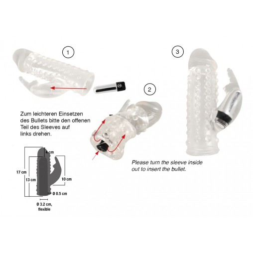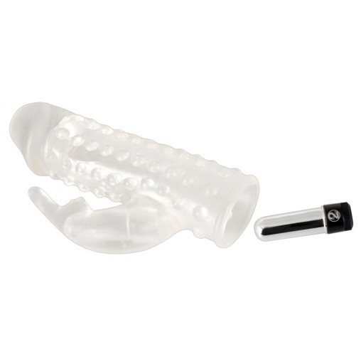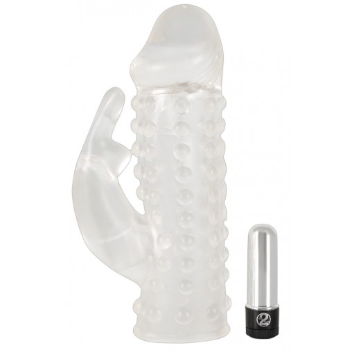Ta prozoren podaljšek za penis postavlja igro med vami in vašim partnerjem na povsem novo raven! Podaljšek za penis bo vašega korenjaka podaljšal za kar 4 cm, to pa še ni vse! Ko si ga boste nadeli gor vam bo partnerka še kako hvaležna, zahvaljujoč klitoralnemu vibratorju, ki jo bo cel čas spolnega odnosa še dodatno stimuliral.