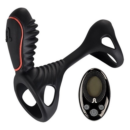 Črn erekcijski obroček z vibratorjem in 10 skorajda neslišnimi vibracijskimi načini.
