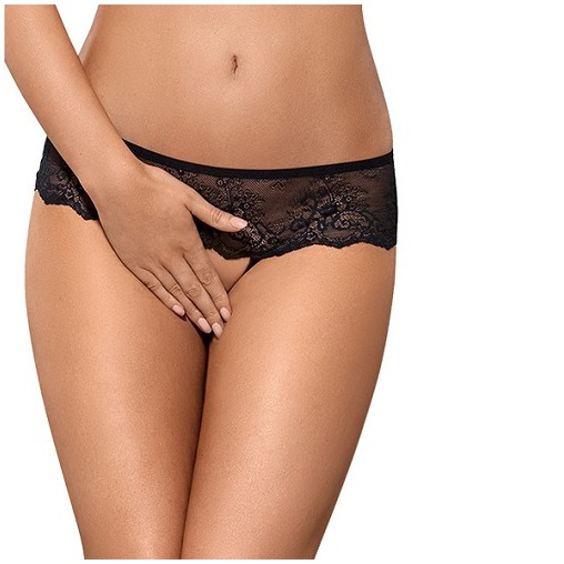 Očarljiva čipka in sexy podrobnosti, ki krasijo hlačke, vas bodo naredile še bolj mikavne. Z odprtino v mednožju boste partnerja še hitreje popeljale v skušnjavo in zagotovo se vam obeta še posebno vroča dogodivščina. Nedvomno bosta nad temi sexy hlačkami, ki bodo prekrasno objele vaše obline, navdušena oba! Hlačke so narejene iz 90% poliamida in 10% elastana.
