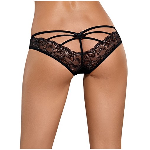 Prebudite svojo zapeljivo naravo in oblecite udobne hlačke, ki se popolnoma prilegajo vašim oblinam. Na prvi pogled so hlačke videti popolnoma nedolžne, vendar boste to mnenje zagotovo spremenili, ko boste zagledali zadnji del hlačk. Trakovi, kateri so na videz povezani z ljubko pentljico bodo vaši zadnjici dodali šarm in poudarili vaše obline. Partner se vam ne bo mogel upreti!