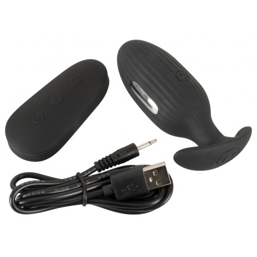 Analni čep s 3 jakostmi električne stimulacije in 7 načini vibriranja, ki jih je mogoče nadzorovati ločeno z gumbi na daljinskem upravljalniku za ponovno polnjenje.