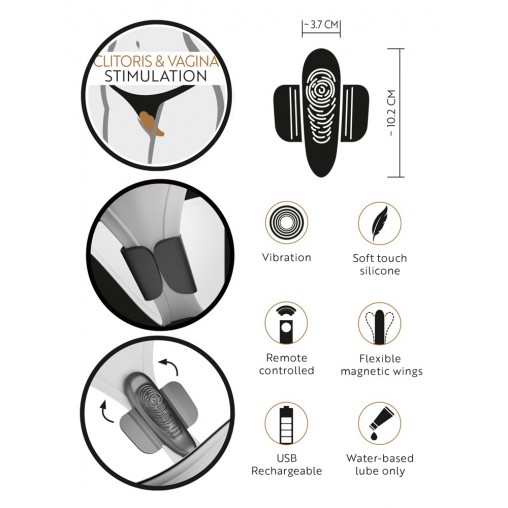 Neposredno stimulira klitoris in nožnico na intenziven način. 10 načinov vibriranja je mogoče enostavno prilagoditi z gumbom na daljinskem upravljalniku. Uporablja ga lahko tudi vaš partner in predigra se lahko začne kjerkoli in kadarkoli! Vibrator je izjemno diskreten, kar pomeni, da nihče ne bo vedel, da ga nosite in uporabljate!
